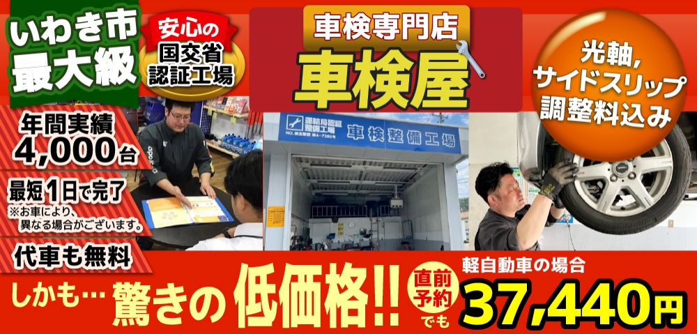 いわきで格安車検3.7万!車検年4千台 いわきの安い車検
