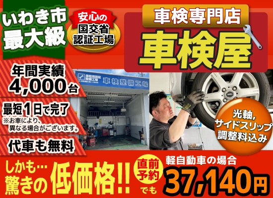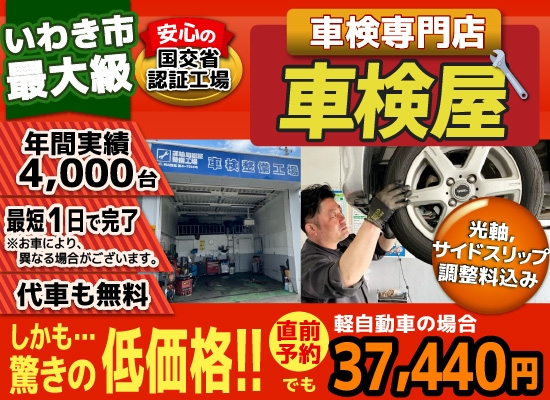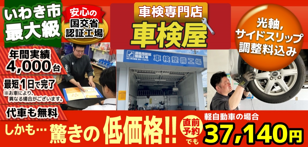 いわきで格安車検3.7万!車検年4千台 いわきの安い車検