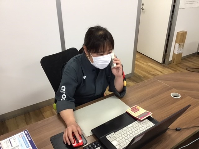 受付で車検のご案内。